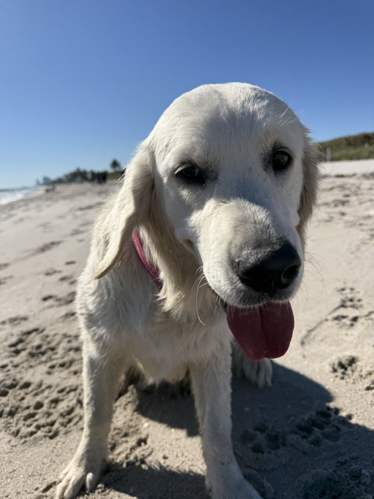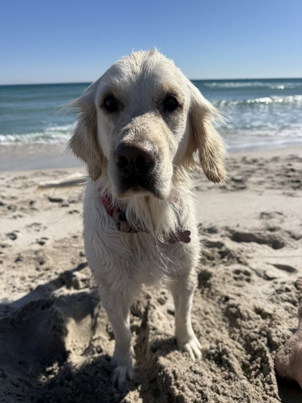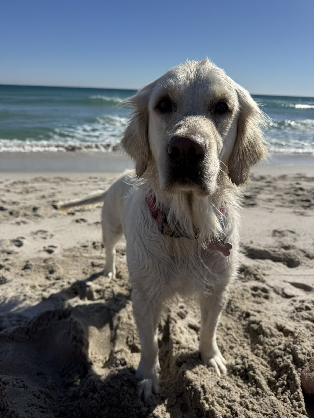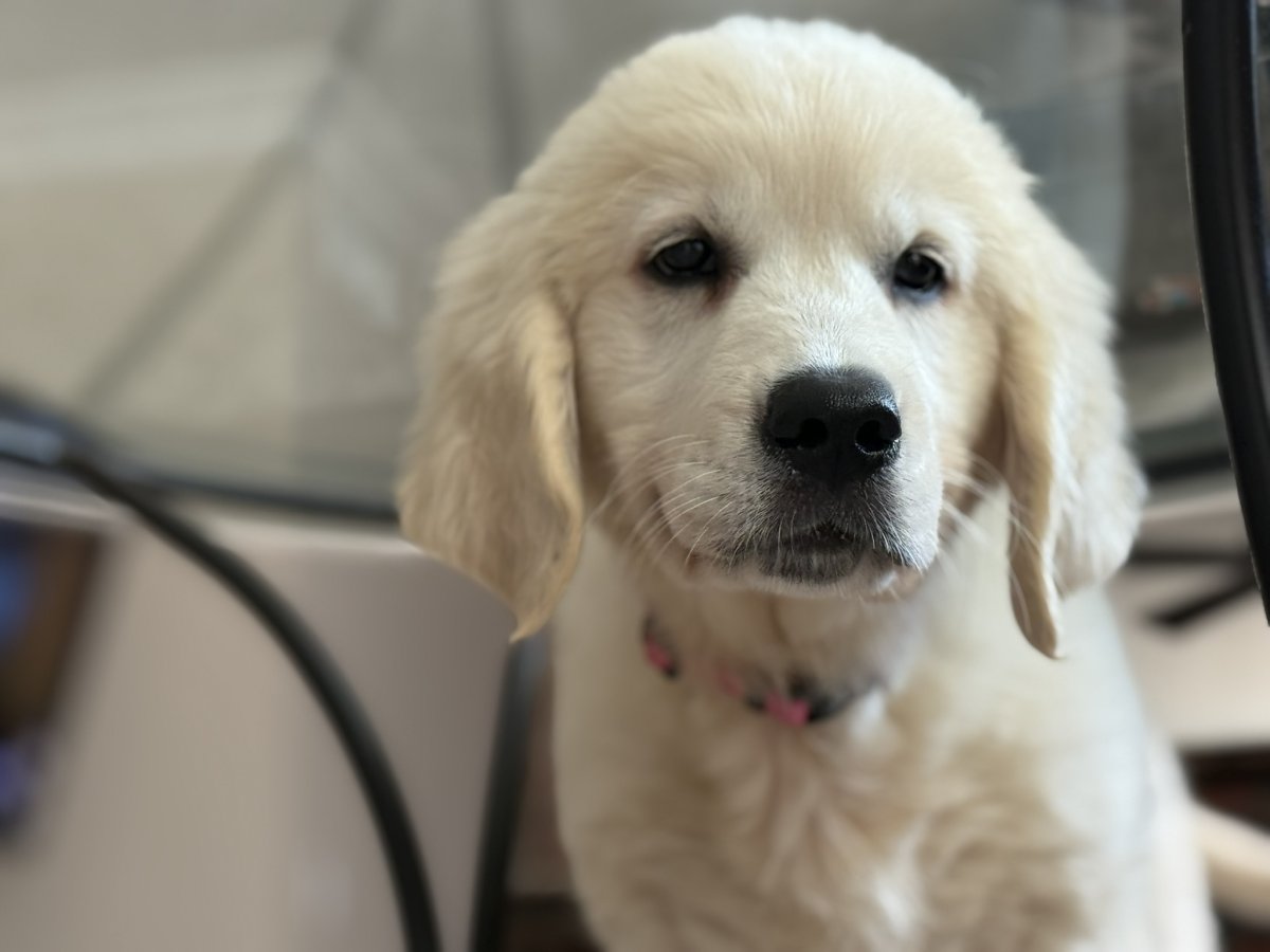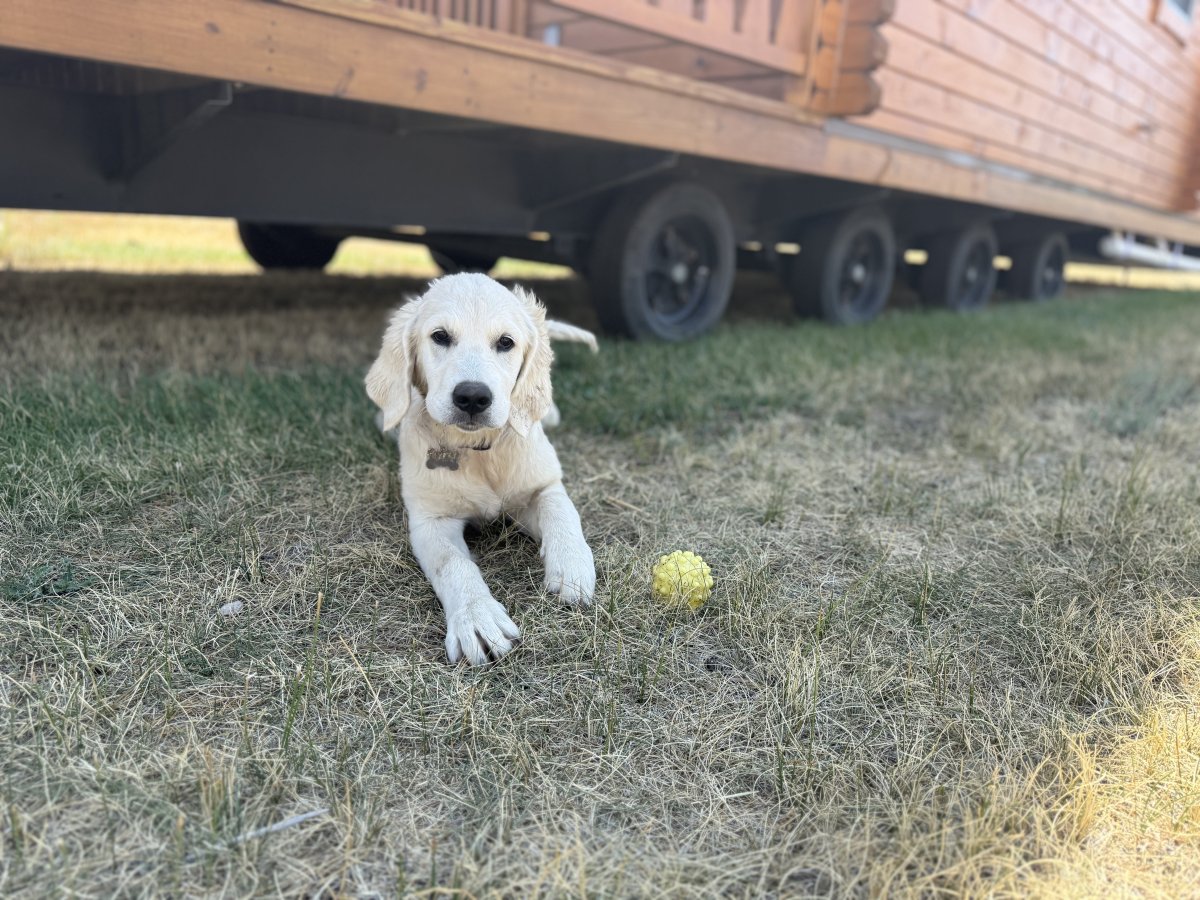 Well we just call her Daisy or Miss Daisy. Daisy is from Indiana and came from a Royal Family of English Cream Golden Retrievers. She won our hearts our 1st couple of days together. She is smart and sweet and knows how to tell you what she wants. Daisy turned 2 years old in July 2025 and had her litter of puppies on October 1st.