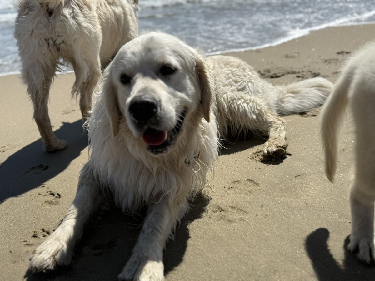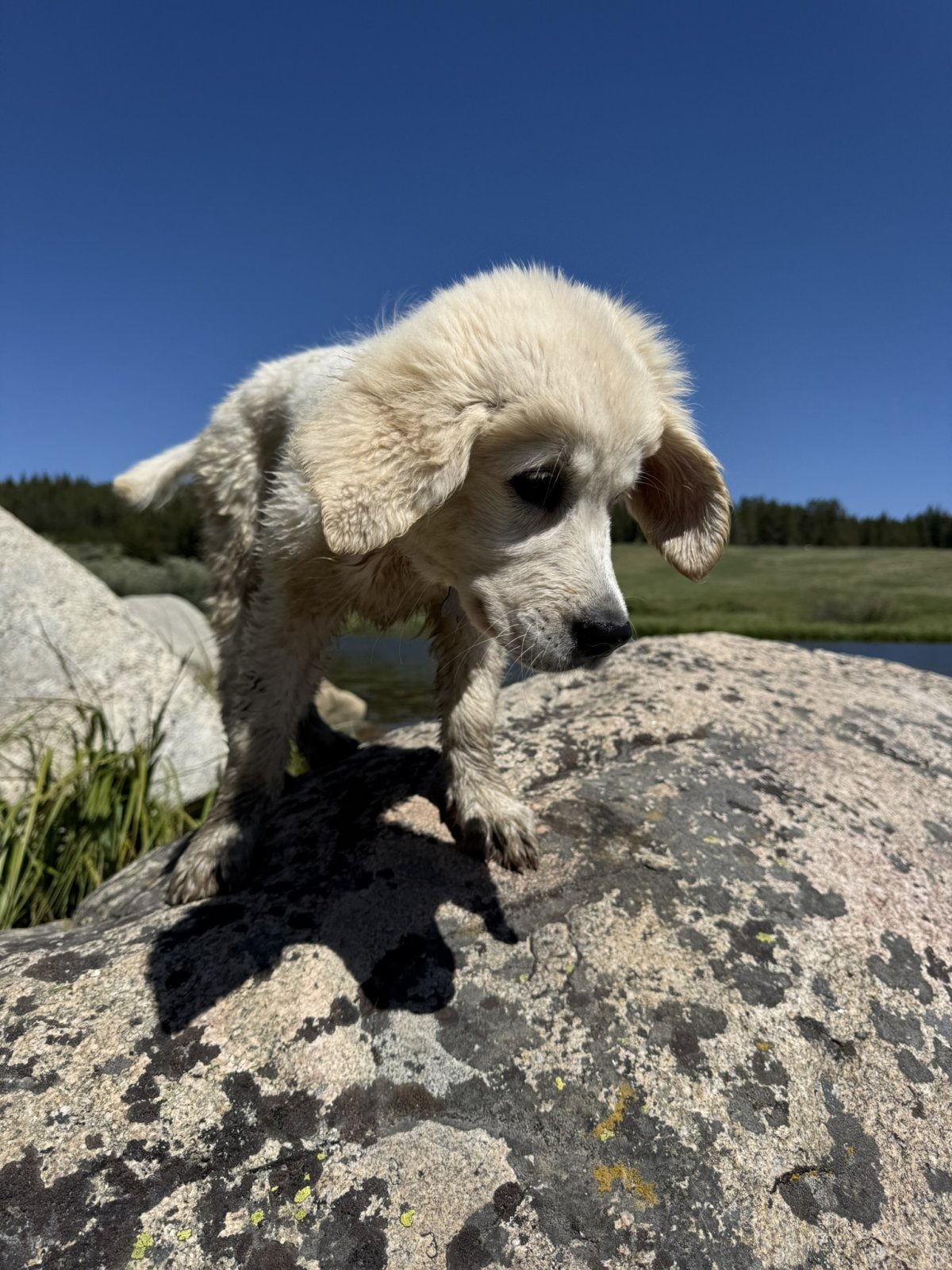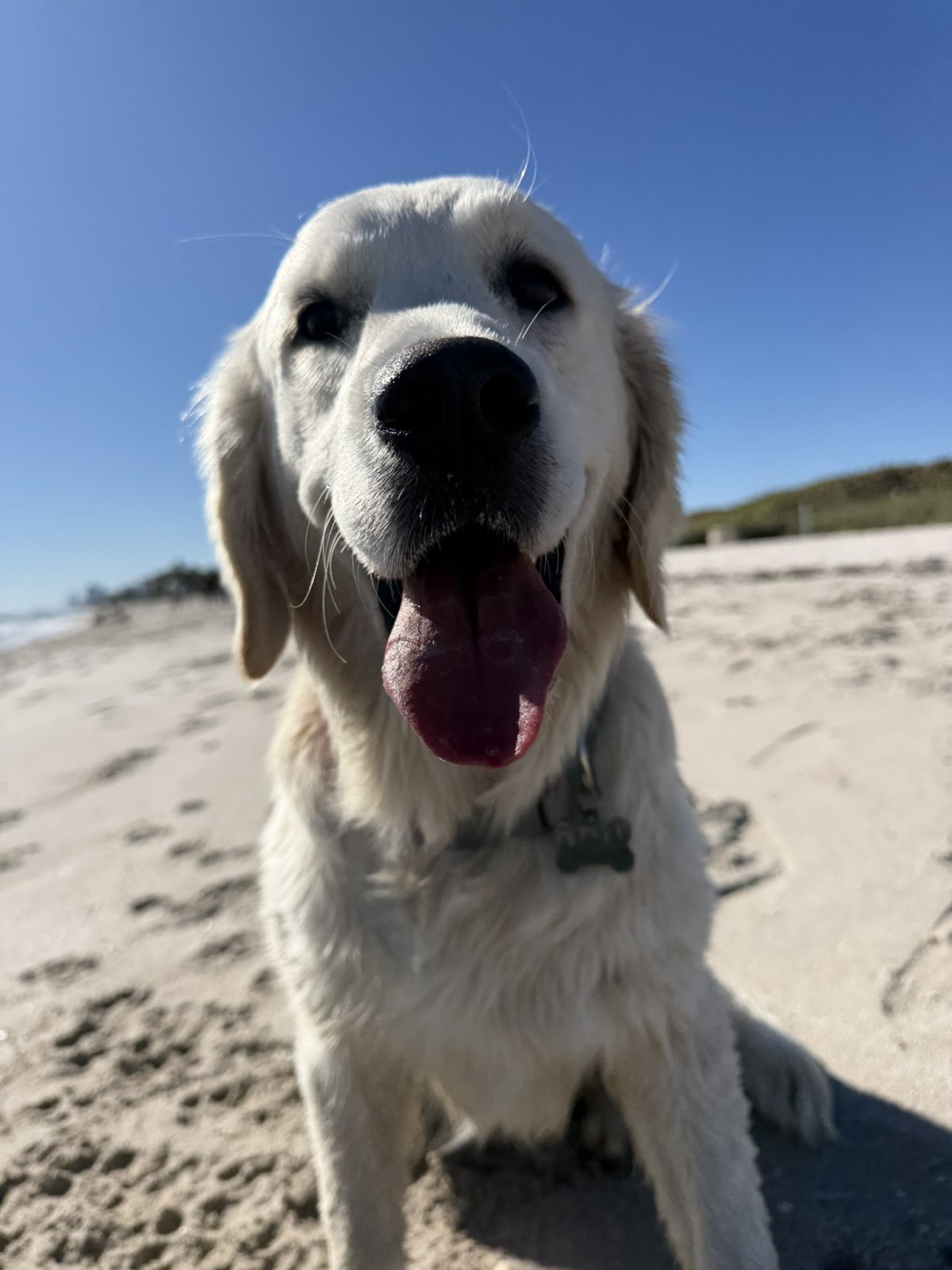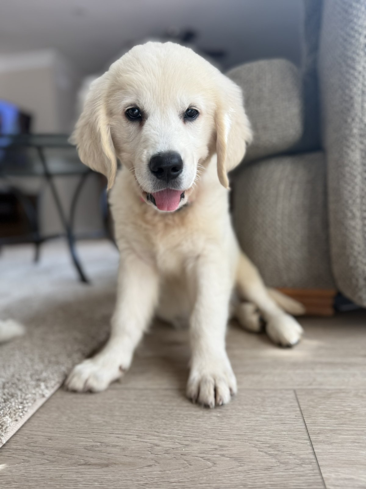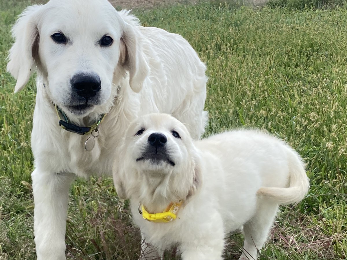 Well we just call her Daisy or Miss Daisy. Daisy is from Indiana and came from a Royal Family of English Cream Golden Retrievers. She won our hearts our 1st couple of days together. She is smart and sweet and knows how to tell you what she wants. Daisy turned 2 years old in July 2025 and had her litter of puppies on October 1st.