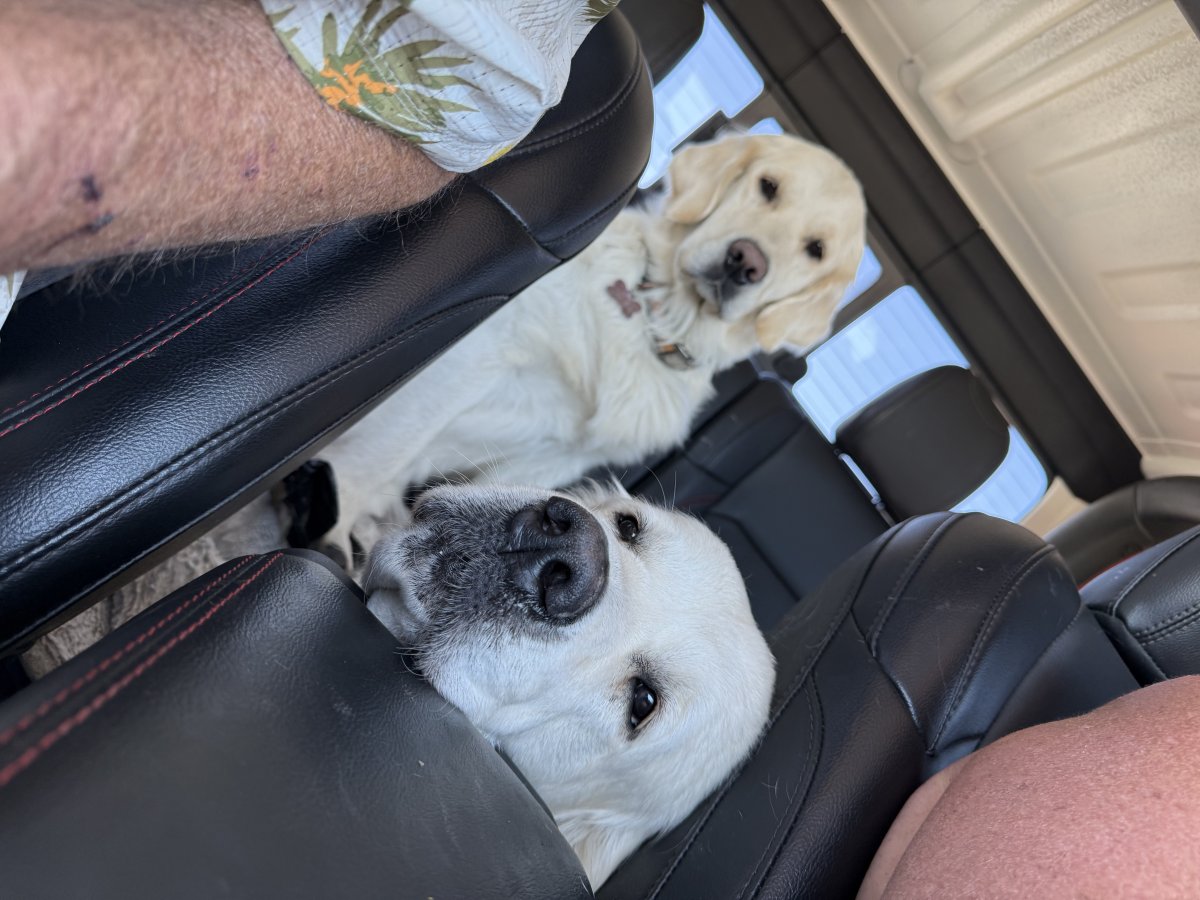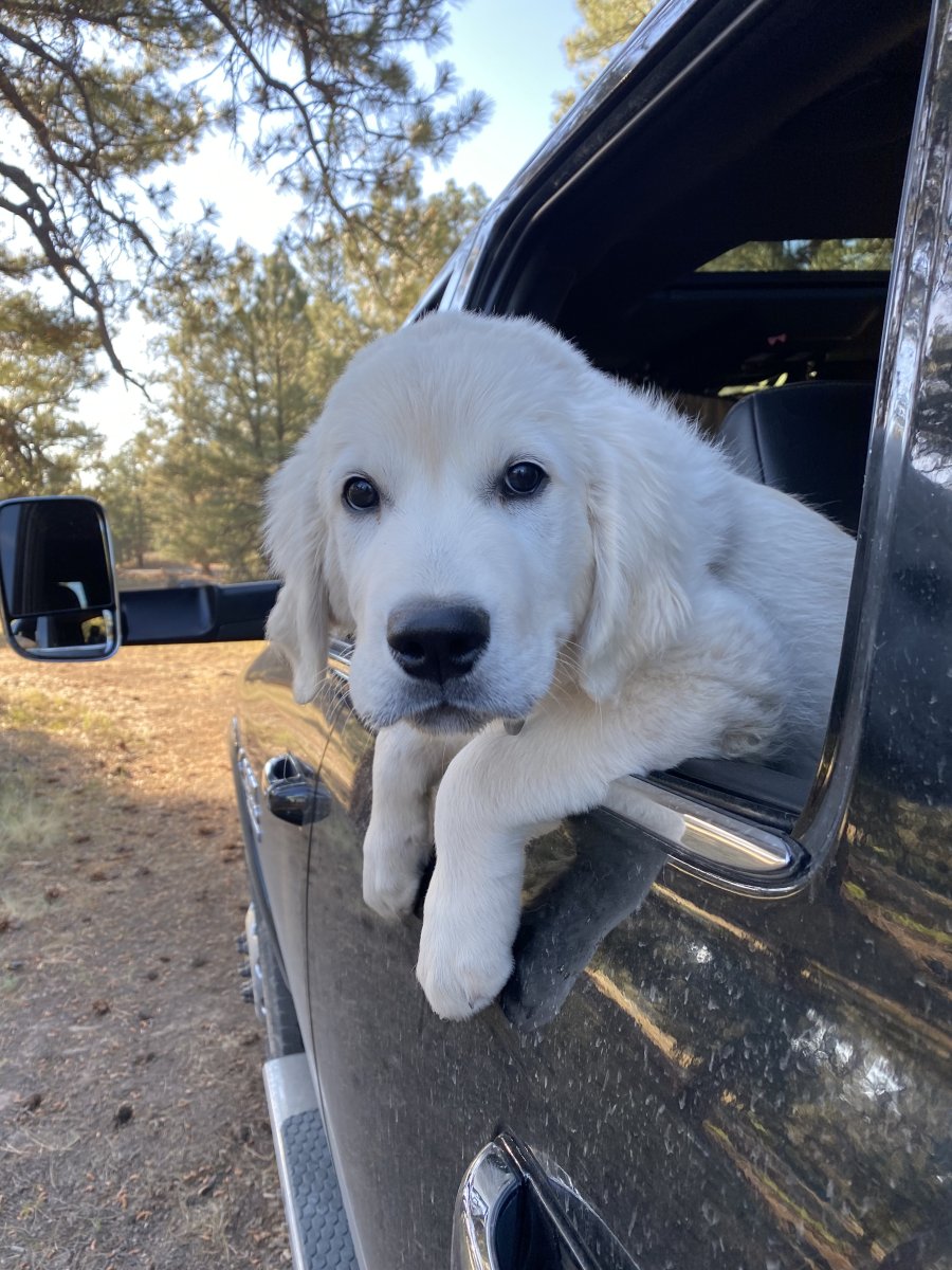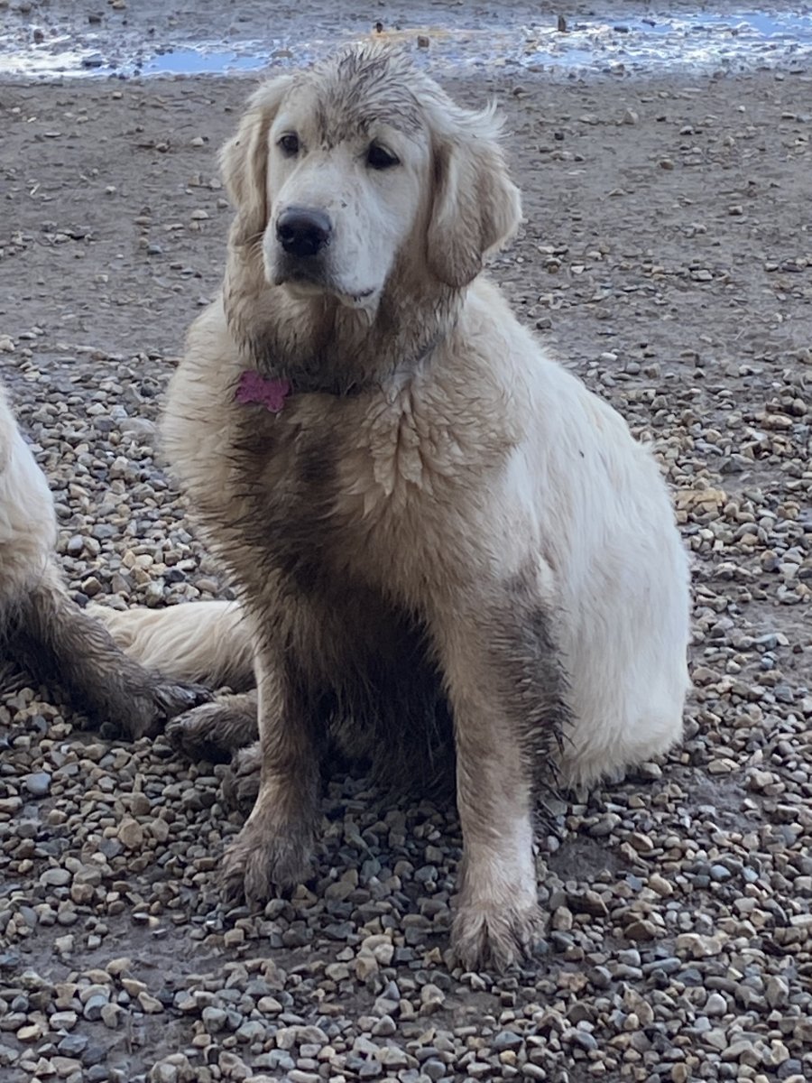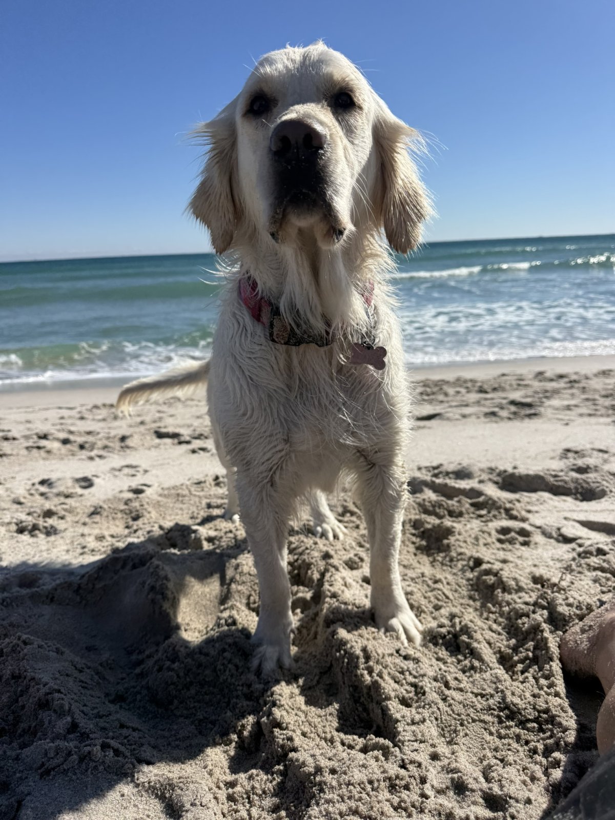 Well we just call her Daisy or Miss Daisy. Daisy is from Indiana and came from a Royal Family of English Cream Golden Retrievers. She won our hearts our 1st couple of days together. She is smart and sweet and knows how to tell you what she wants. Daisy turned 2 years old in July 2025 and had her litter of puppies on October 1st.
