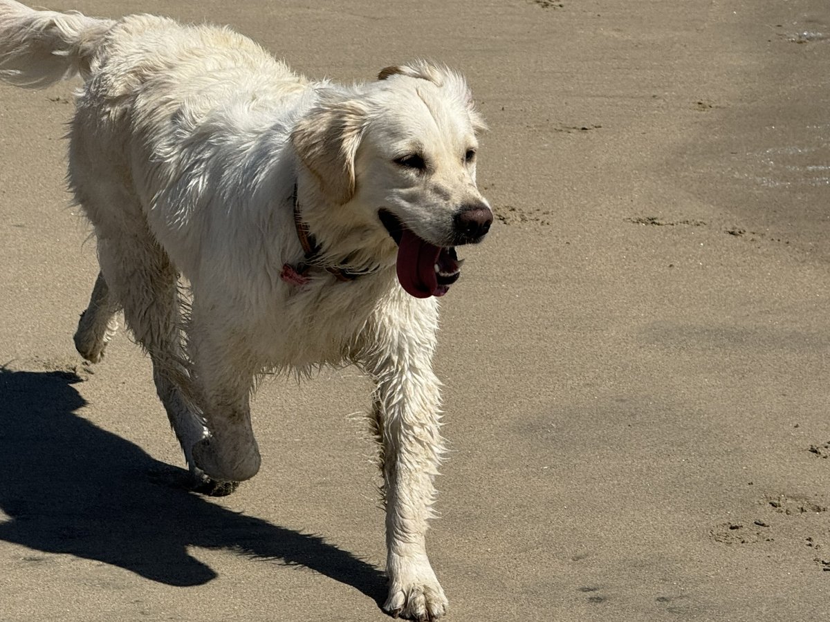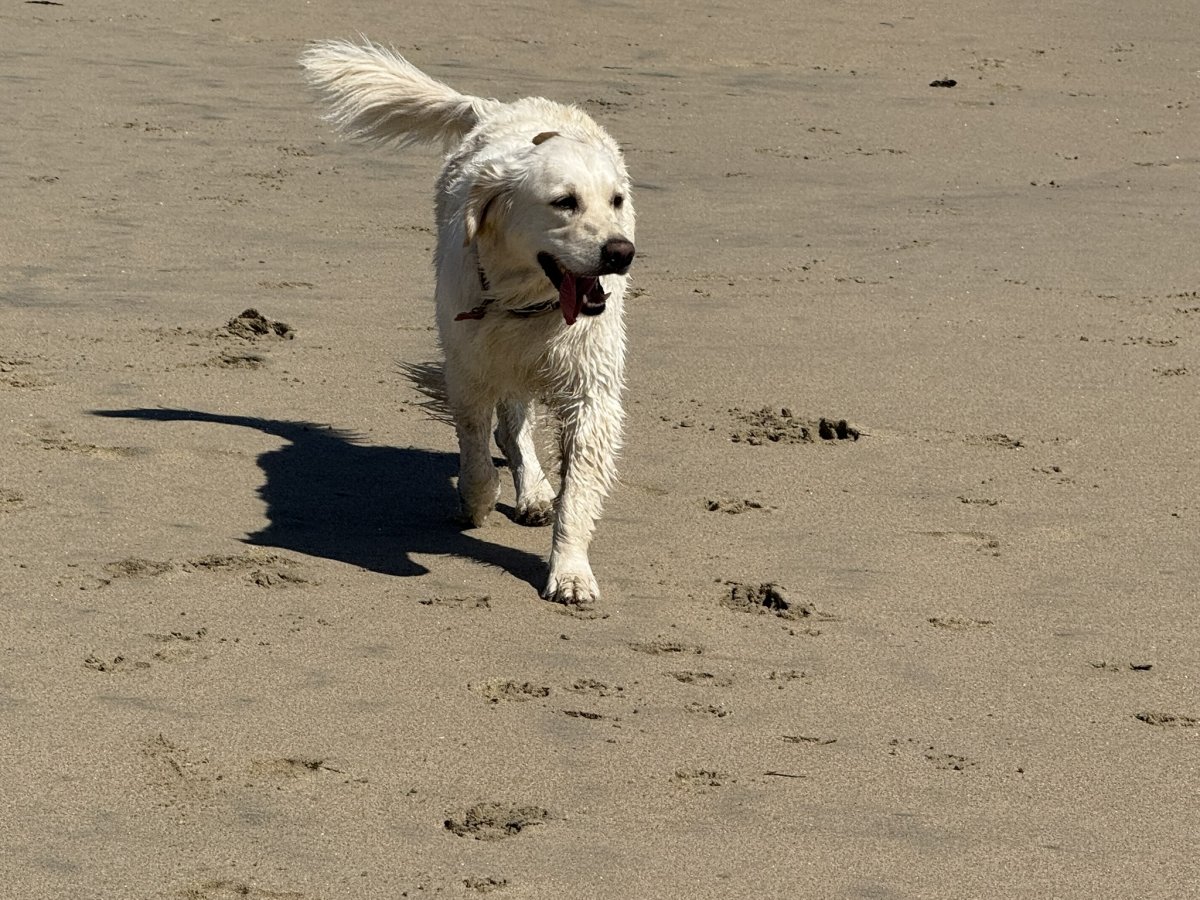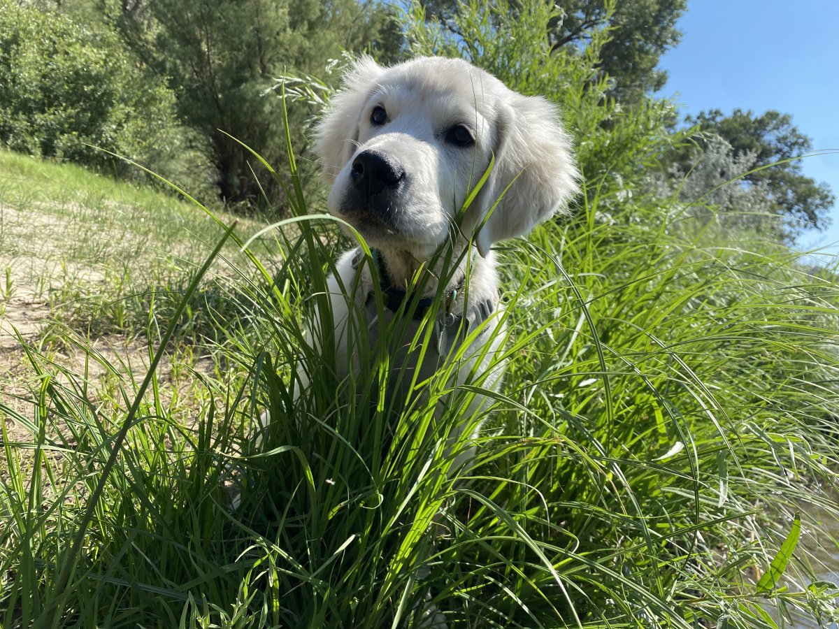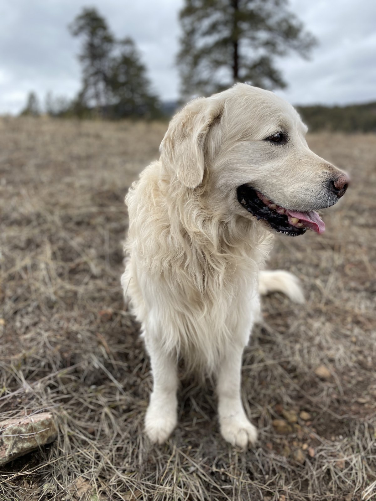 Well we just call her Daisy or Miss Daisy. Daisy is from Indiana and came from a Royal Family of English Cream Golden Retrievers. She won our hearts our 1st couple of days together. She is smart and sweet and knows how to tell you what she wants. Daisy turned 2 years old in July 2025 and had her litter of puppies on October 1st.